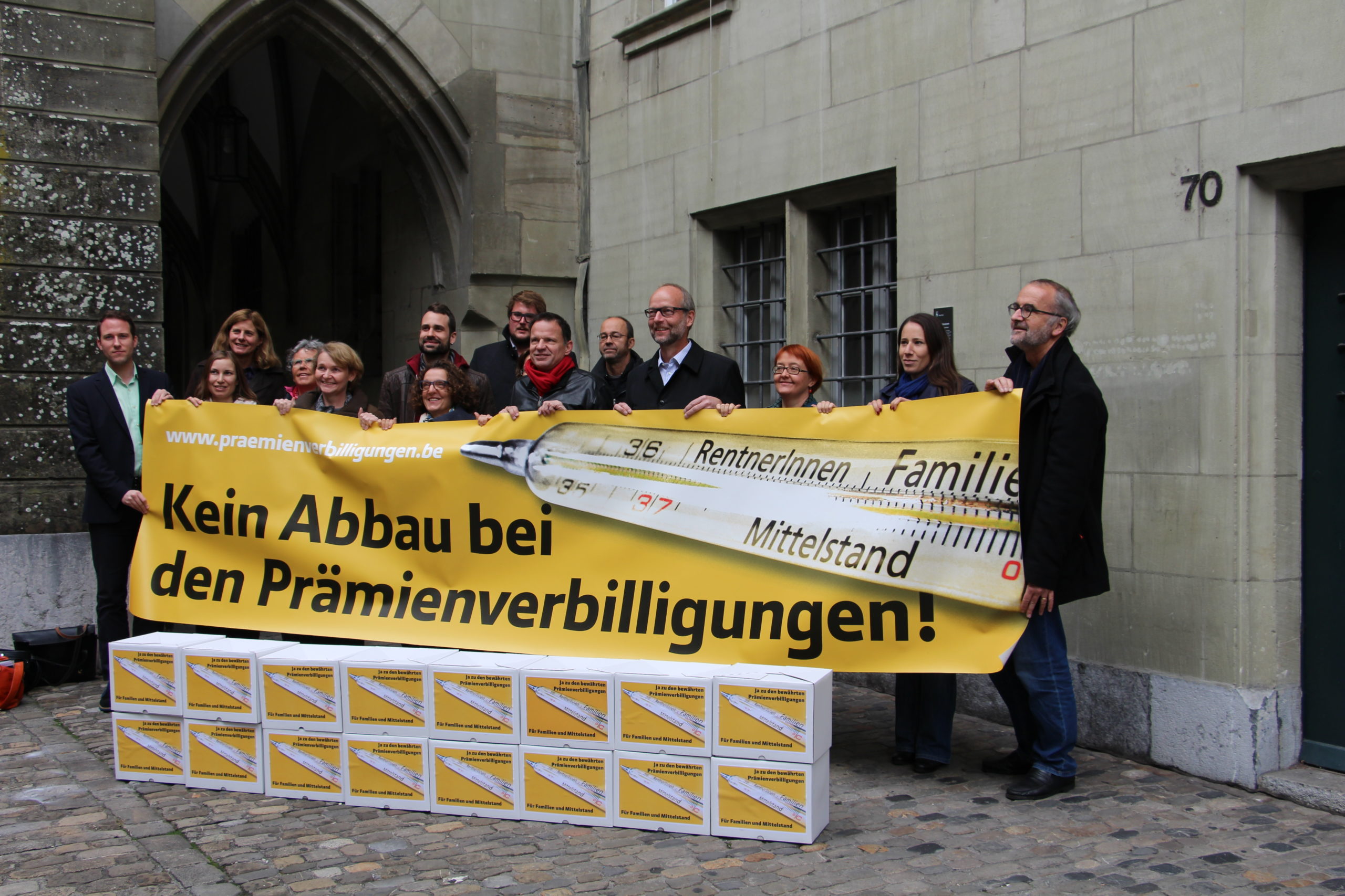 Das Komitee «Bewährte Prämienverbilligungen» setzt sich mit einer Initiative und einem Referendum gegen den Abbau bei den Prämienverbilligungen für die Krankenkasse ein. Beide Volksbegehren sind nötig: Mit dem Referendum wird sichergestellt, dass das einkommensschwächste Viertel der Bevölkerung weiterhin Prämienverbilligungen erhält. Die heute eingereichte Initiative «Ja zu den bewährten Prämienverbilligungen – für Familien und Mittelstand» fordert, dass der Kanton Bern seine Ausgaben für die Prämienverbilligungen wieder deutlich erhöhen und die Sparmassnahmen von 2013 rückgängig machen muss. Dazu werden sowohl die Anzahl der ausgerichteten Prämienverbilligungen, als auch die Höhe der Prämienverbilligungen auf dem Stand von 2013 im Gesetz verankert, wie das Komitee bei der Einreichung der Initiative erläuterte. «Die Verbilligungen sind ein anerkannter und notwendiger Teil des Prämiensystems. Die hohe Anzahl von 18’174 gültigen Unterschriften aus dem ganzen Kanton Bern zeigt, wie breit abgestützt unser Anliegen ist», blickte Ursula Marti, Präsidentin der SP Kanton Bern, auf die erfolgreiche Sammelphase zurück. Natalie Imboden, Co-Präsidentin der Grünen Kanton Bern, ergänzte: «Für den Erhalt der Prämienverbilligungen braucht es den ausserparlamentarischen Druck. Dank dem Referendum kann sich die Bevölkerung bereits am 28. Februar 2016 deutlich gegen den falschen Abbau aussprechen.»